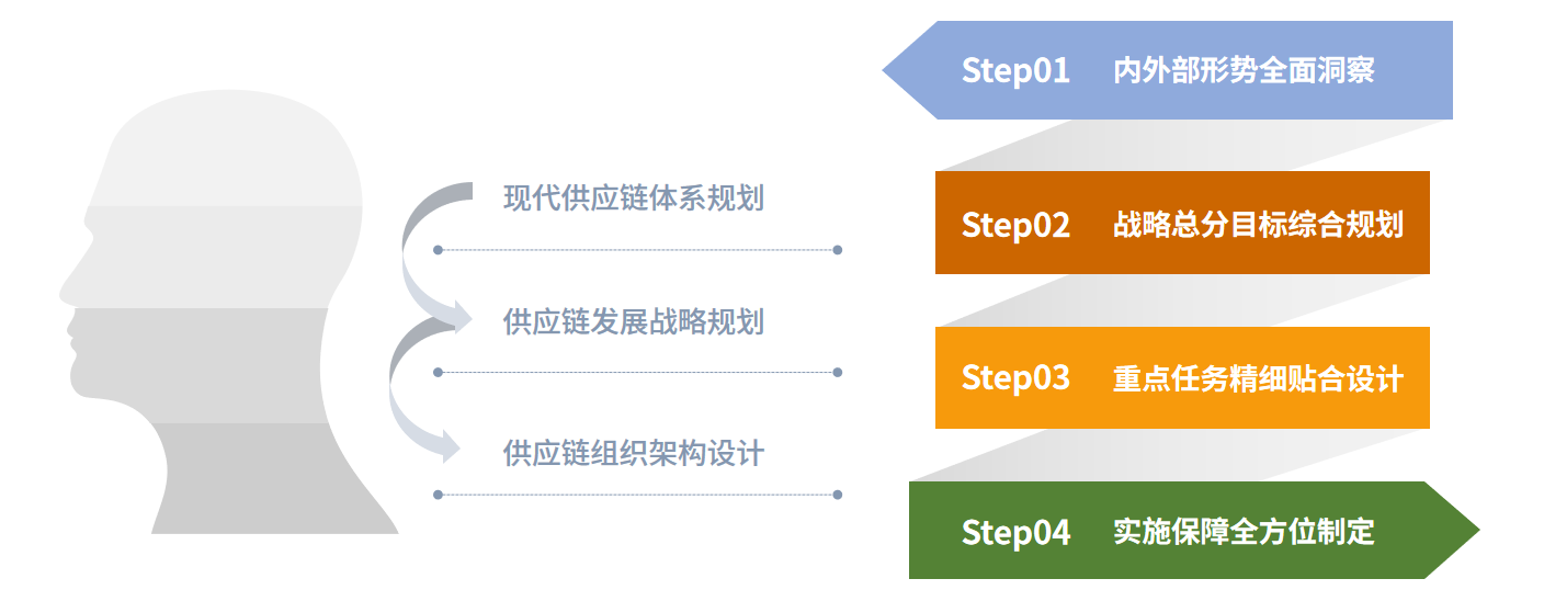 抓住行業(yè)動(dòng)態(tài)趨勢與客戶發(fā)展實(shí)際,提供供應(yīng)鏈體系、發(fā)展戰(zhàn)略、組織架構(gòu)重構(gòu)等戰(zhàn)略規(guī)劃服務(wù),找準(zhǔn)企業(yè)供應(yīng)鏈發(fā)展方向與重點(diǎn),支撐實(shí)現(xiàn)企業(yè)戰(zhàn)略目標(biāo)。